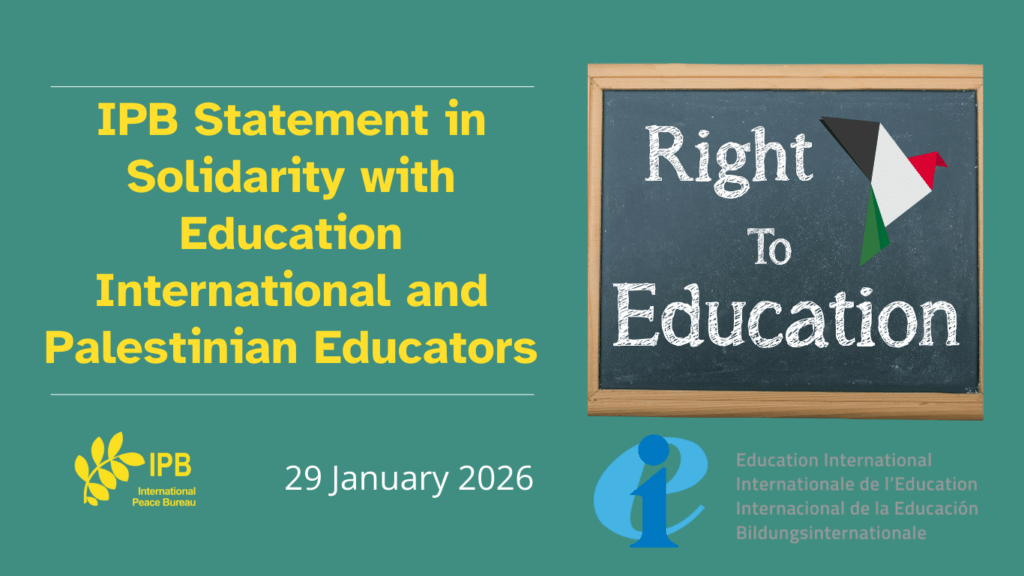 The International Peace Bureau (IPB) stands with Education International (EI) in condemning the Israeli occupation authorities for denying entry to, detaining, interrogating, and forcibly removing a delegation of education workers’ leaders who planned to mark the International Day of Education...