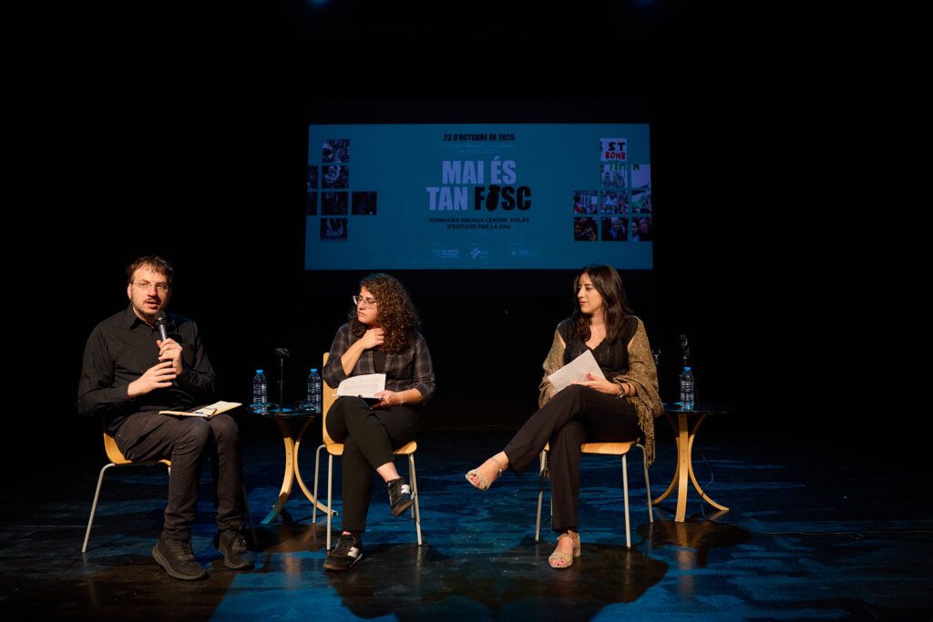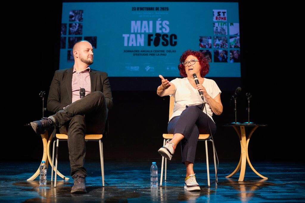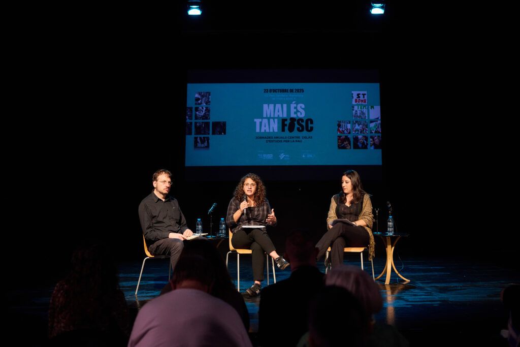 The event opened on Thursday, October 23, with the Centre Delàs Annual Conference 2025, titled “Darkest before dawn. Pacifism in times of genocide and rearmament.” Held at Sala Sandaru, the conference reflected on two years of genocide in Gaza, Western complicity, and the growing normalization of militarism. Participants called for non-violence and alternatives to the policies of rearmament and authoritarianism.
