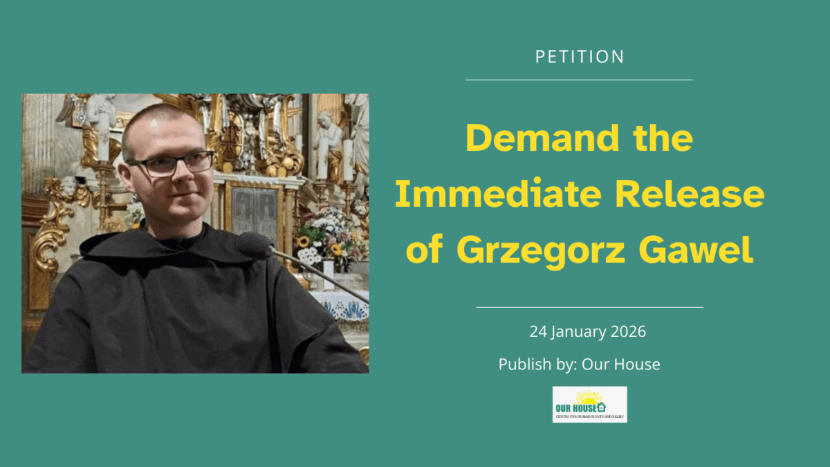 Grzegorz Gawel, a Polish Catholic monk and humanitarian, has been unlawfully detained in Belarus and recognized by human rights defenders as a political prisoner. He is being held incommunicado under fabricated espionage charges. We demand his immediate release and full respect for international human rights law.