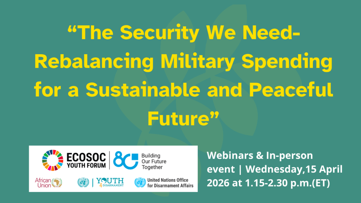 Please join the UN Office for Disarmament Affairs (UNODA) and the Permanent Observer Mission of the African Union to the United Nations for this ECOSOC Youth Forum side event on the key findings and recommendations from the UN Secretary-General’s report ” The Security We Need-Rebalancing Military Spending for a Sustainable and Peaceful Future”.