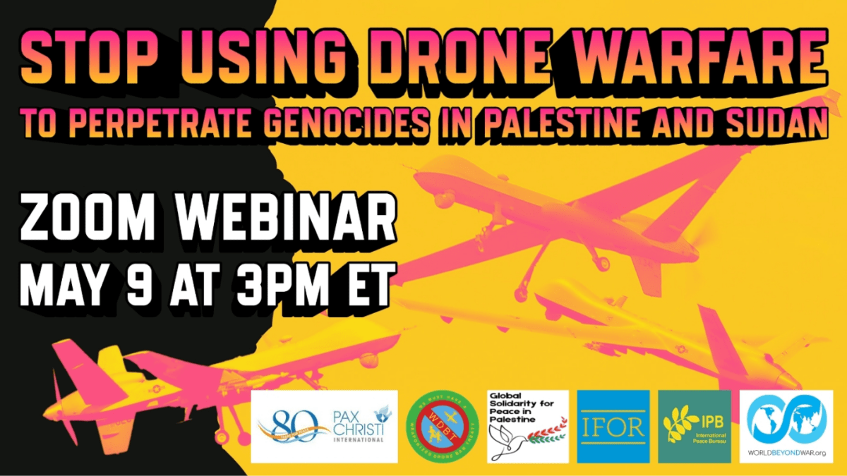 On Saturday, May 9 at 3 pm EDT, we will examine the problem of drone warfare and possible solutions. A panel of speakers will be followed by Q&A.A printable PDF flyer about this event is here.
