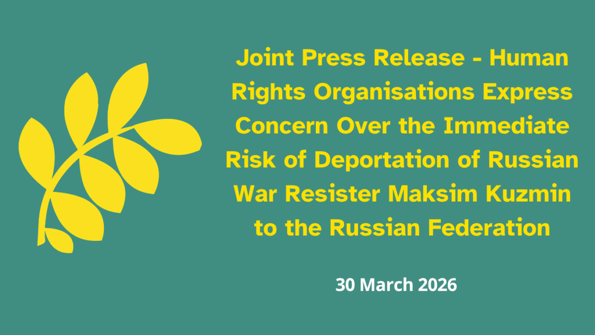 The undersigned organizations are alarmed that because Maksim Kuzmin is a consistent and genuine conscientious objector to war, there are substantial grounds to believe that if returned to the Russian Federation he could face mobilisation and be forcibly sent to fight in the war against Ukraine, where he could be compelled to participate in war crimes under threat of violence or severe punishment.