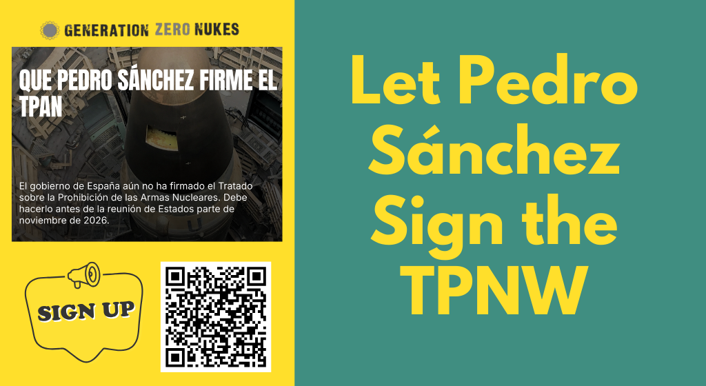 IPB supports the call for Spain to sign the Treaty on the Prohibition of Nuclear Weapons (TPNW) before November 2026. Help Generation Zero Nukes reach their goal: 300 signatures to collect! The Spanish government has still not signed the Treaty on the Prohibition of Nuclear Weapons (TPNW). It must...