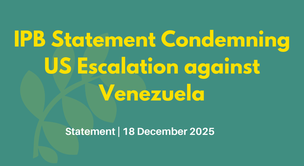 18 December 2025, Berlin, Germany The International Peace Bureau (IPB) firmly condemns the continued escalation of the US military in the Caribbean against Venezuela, in particular the recently announced “total and complete blockade” of oil tankers leaving and entering the country which is an act of...